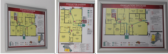 Check the evacuation path diagram on wall and locations of assembly areas.