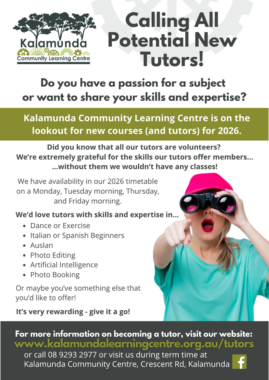 In this edition we meet Deb Stone, another member of your KCLC executive, dates for next years courses and enrolments, and information about gift certificates. There is a call for new tutors/courses in 2026, and I can highly recommend the experience; you get back far more than you give. Once again the 'Sharing a Hills Christmas' community initiative asks for your help in this venture while Su laments the items still unclaimed from Lost Property.